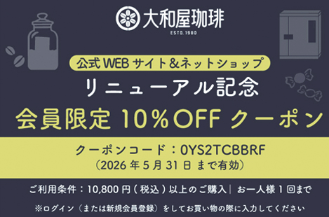 大和屋珈琲ネットショップでは、月曜日と木曜日に珈琲豆を焙煎し、翌日発送しております。